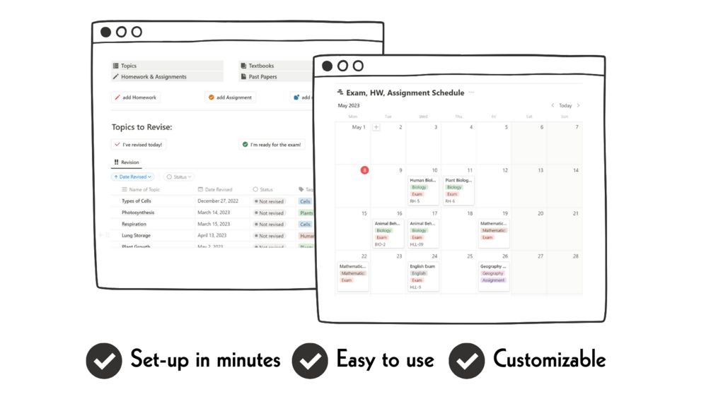 The Notion Student Revision dashboard template is easy to use and requires no coding skills. You can import it into your Notion account in minutes and start using it right away.