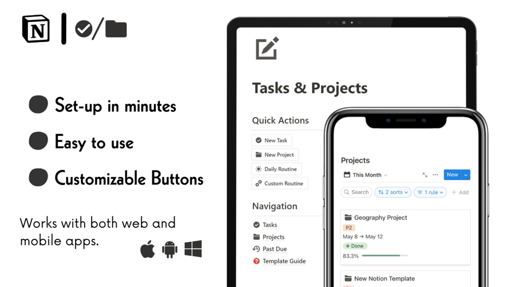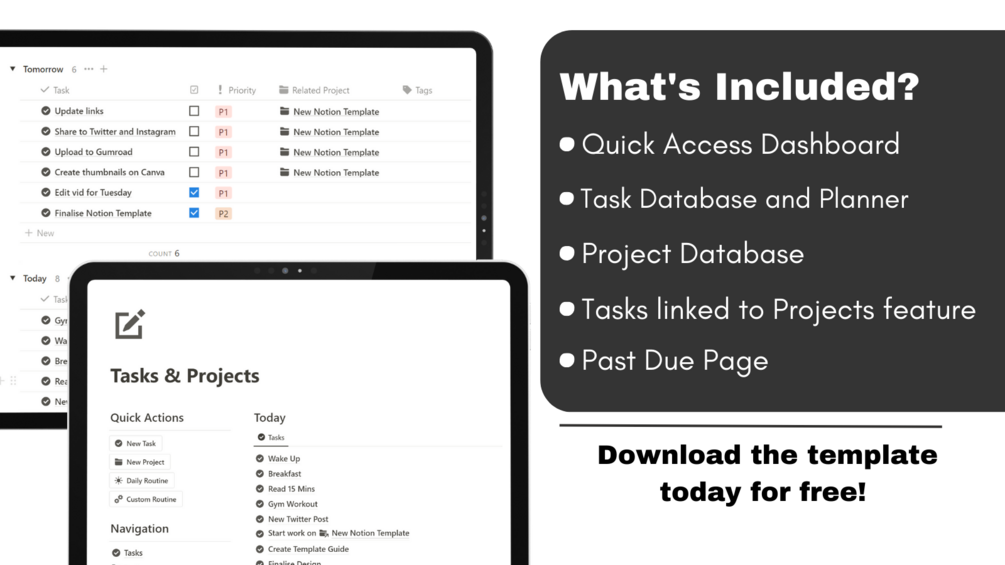 The Notion Tasks & Projects Template is designed to help you plan your tasks and projects in Notion.